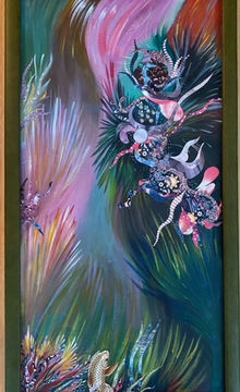 I have been painting and drawing on walls, wood, humans, canvasses and mannequins since childhood. I work intuitively, not fully planning the final product and accept that as my process. I like the element of surprise for both myself and the viewer.